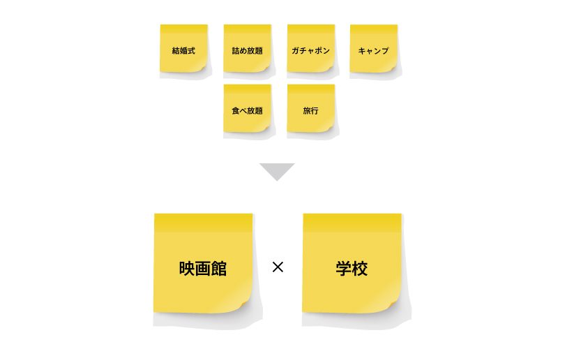 2025.08.13 2026.03.27 デザイン 刺激語法 dede-lab Contents 刺激語法とは刺激語法とは 刺激を受けそうなキーワードが書かれたカードをランダムに引いて、その言葉から強制的に連想することで、いろんなアイデアを発想する イメージを広げるために、強制的に関連付けるカードを2枚にして発想すると効果的 刺激となるようなキーワードをカードに書き出す ランダムにカードを選択する 選択したカードに書いてあるキーワードを強制的に関連付けることで、新たなデザイン要素を発想する あわせて読みたいブレインストーミング スポンサーリンク