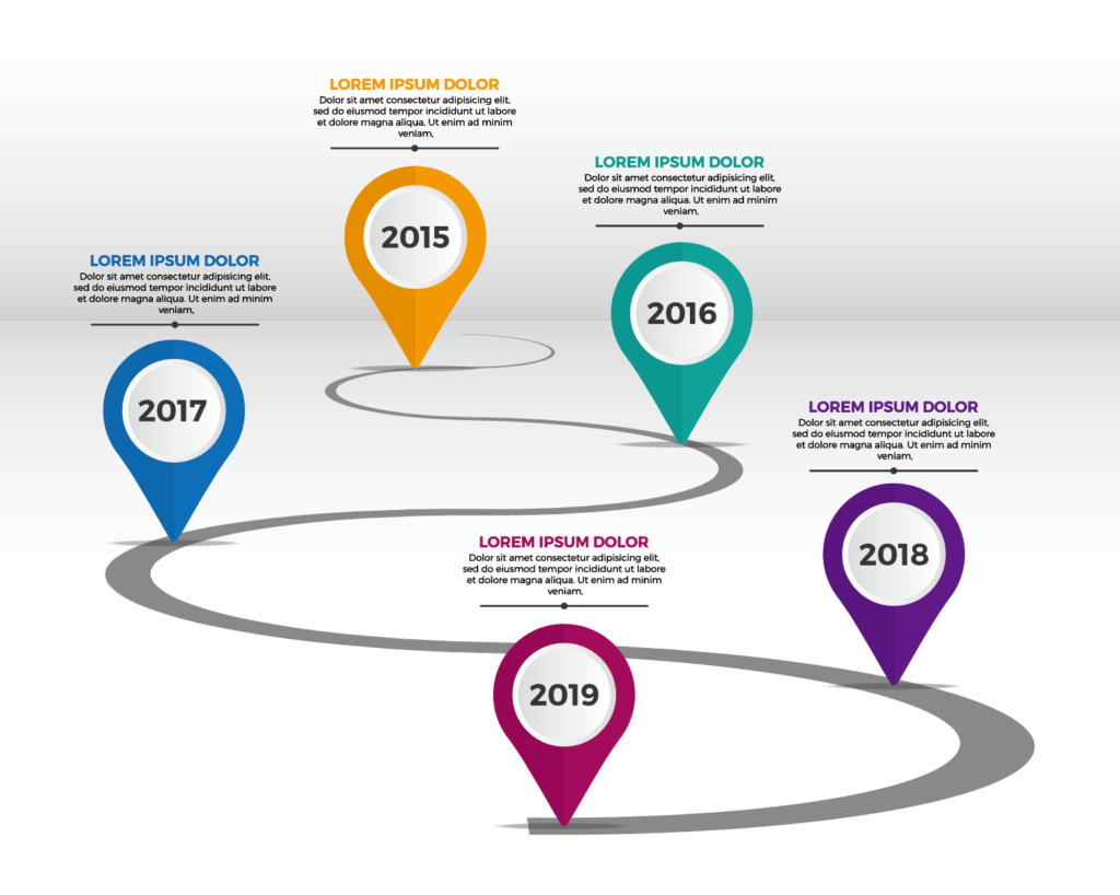 時間の流れに沿って、主要なイベントやマイルストーンを示す。