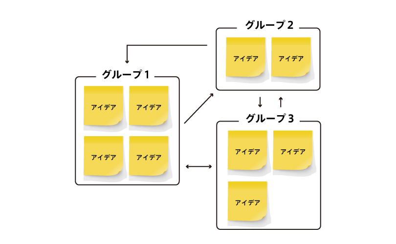 2025.08.13 2026.03.27 デザイン KJ法 dede-lab Contents KJ法とはKJ法とは 発想されたアイデアをカード(付箋、メモなど)に記入して、それらのカードの内容の似たもの(カテゴリごと)をグルーピングすること KJ法は、日本で考案されたデザイン手法の中では、最も有名な もののひとつです。KJ法の名前は、文化人類学者で東京工業大学名誉教授の考案者 川喜田二郎(Kawakita Jiro)氏のイニシャルに由来しています。 刺激となるようなキーワードをカードに書き出す 内容の似たもの(カテゴリごと)をグルーピングする グループ同士の関係性を図に表しさらにアイデアを出していく あわせて読みたいブレインストーミング スポンサーリンク