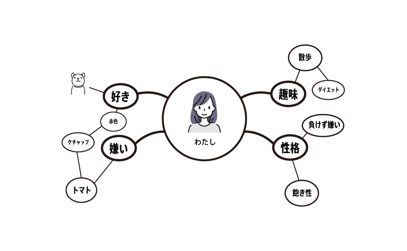 2025.08.13 2026.03.27 デザイン マインドマップ法 dede-lab Contents マインドマップ法とはマインドマップ法とは 放射状に記述された文章やイメージを用いて、アイディアを発想することを目的とした発想法 全体の構造を把握しやすくするために、中心付近の線は太く、外側に伸びる線は細くするなど、線の太さや色を変えると良い要素は言葉だけでなく記号や絵図、写真などのイメージを用いると良い 紙の中心にデザイン対象を表す文章やイメージなどのデザイン要素を記述する 連想(発想)されるイメージや文章を抽出し、それらを中心から放射状にキーワードを配置する 連想(発想)されるイメージや文章をさらに枝分かれさせた細い線上に配置するある程度要素が増えたら紙全体を俯瞰みて、新たにデザイン要素を連想(発想)する あわせて読みたいブレインストーミング スポンサーリンク